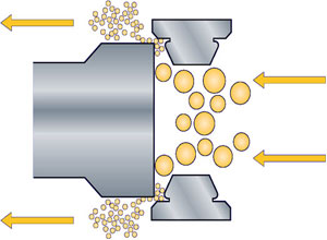 高壓均質(zhì)機主要工作是通過柱塞往復(fù)運動將被加工物料以高壓的形式送至均質(zhì)閥,使物料流經(jīng)閥頭與閥座間微小的隙瞬受到湍流、空穴、撞擊、剪切等復(fù)合的作用,將原先粗糙的乳濁液或懸浮液加工成極細微的、均勻穩(wěn)定的液與液相混乳化物或液與固分散物。